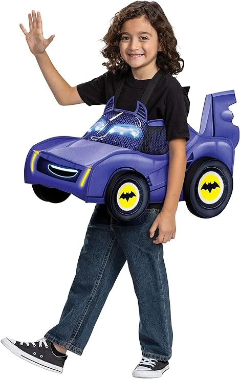 This cute Batwheels costume features a stiff felt 3D light-up vehicle, and printed art of Bam’s car parts throughout. Batteries included.Ā