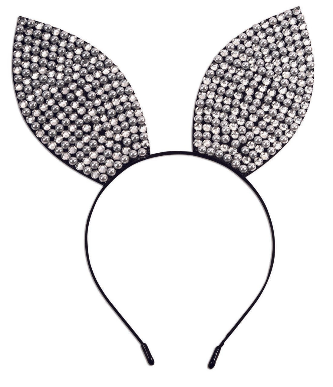 These bunny ears are made of felt and are covered in pearls and rhinestones.
