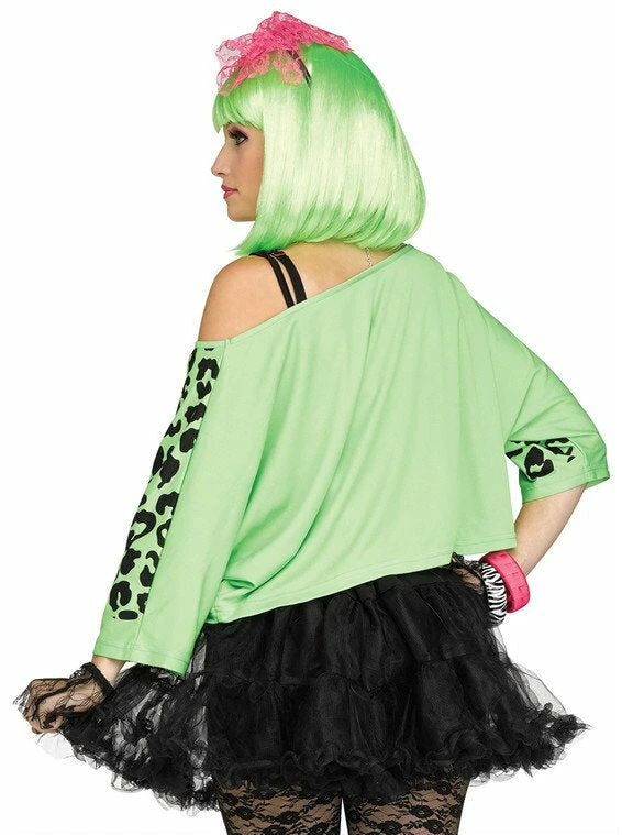 Make your costume come alive with this brightly colored 80’s Green Crop Top! Perfect for 80s themes, or a Madonna or Cyndi Lauper look. Totally rockin’ dude!