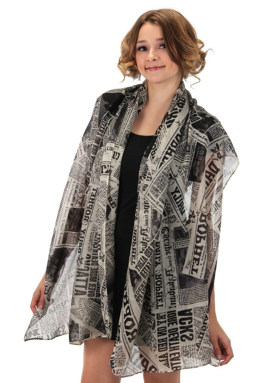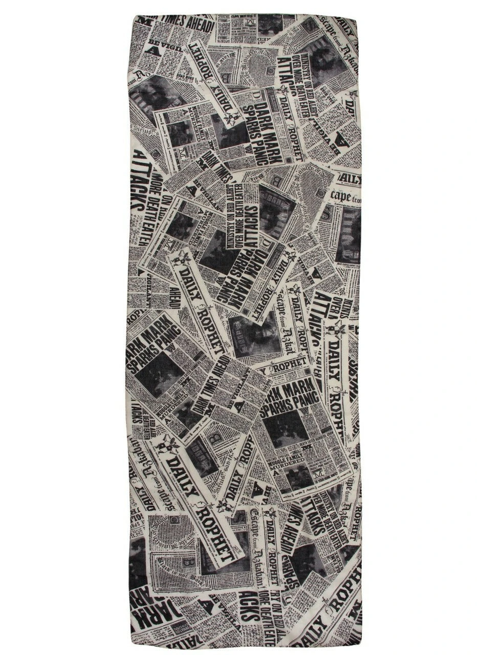 Extra! Extra! Read all about it on this HARRY POTTER DAILY PROPHET Newspaper Print Lightweight Scarf. Designed to reflect the wizarding publication featured in the film, this lightweight polyester scarf features an intricate newsprint pattern. Examine the scarf carefully and you’ll find details of SIRIUS BLACK and his notorious escape from AZKABAN. Great as a gift for a fans of the WIZARDING WORLD or as a light accessory for summer days, this Daily Prophet Newspaper Print Lightweight Scarf by elope is sure to add some magic to your everyday.
