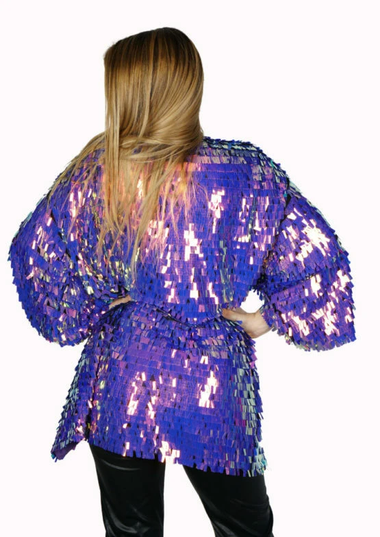 This amazing multicolor over-sized sequin duster jacket – is what dreams are made of!
