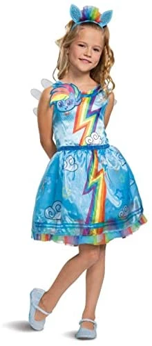 Rainbow thunderbolts and colorful power filled winds will begin to appear with the beautiful Rainbow Dash in the room! This dress and headpiece will make you unmistakable as the pony princess herself. It features wings on the back and ears on the headpiece for more Rainbow Dash details!