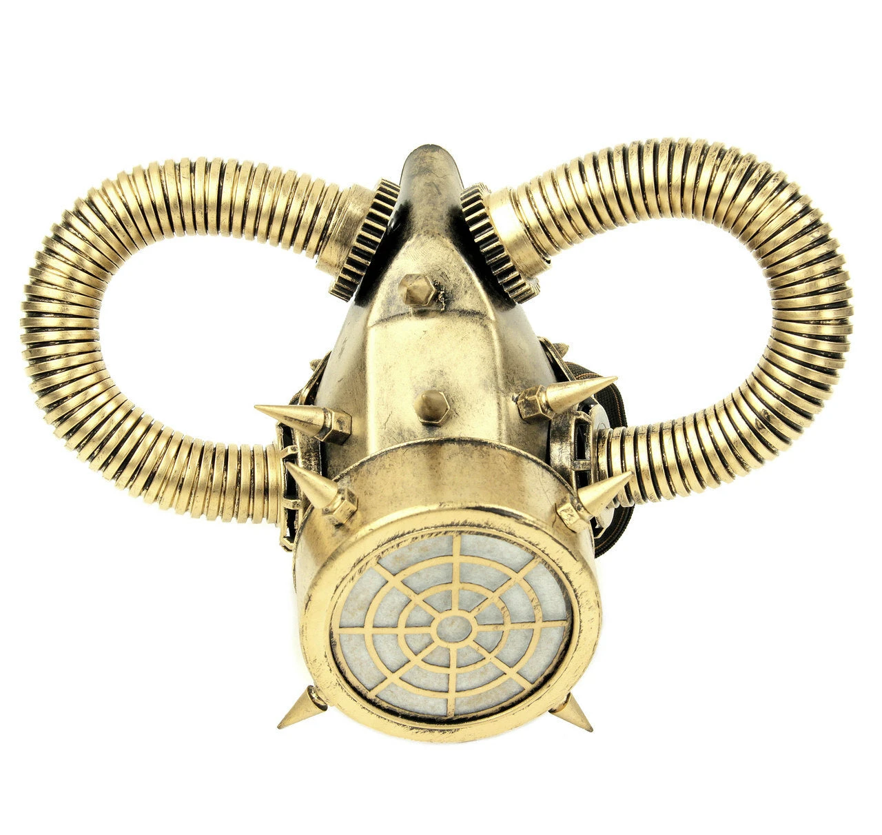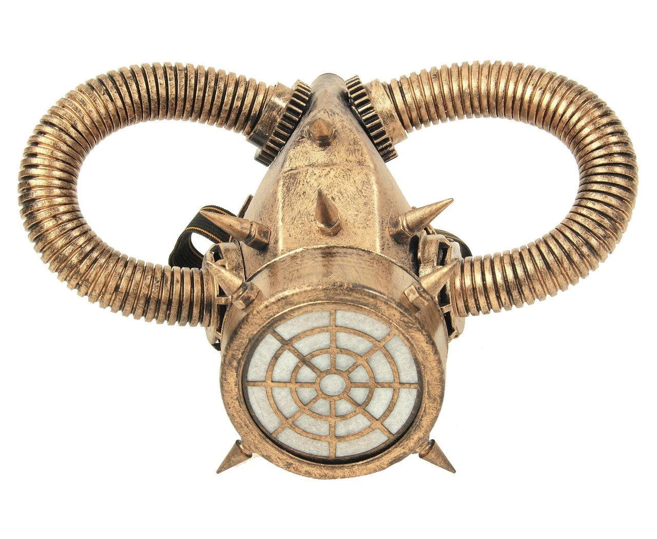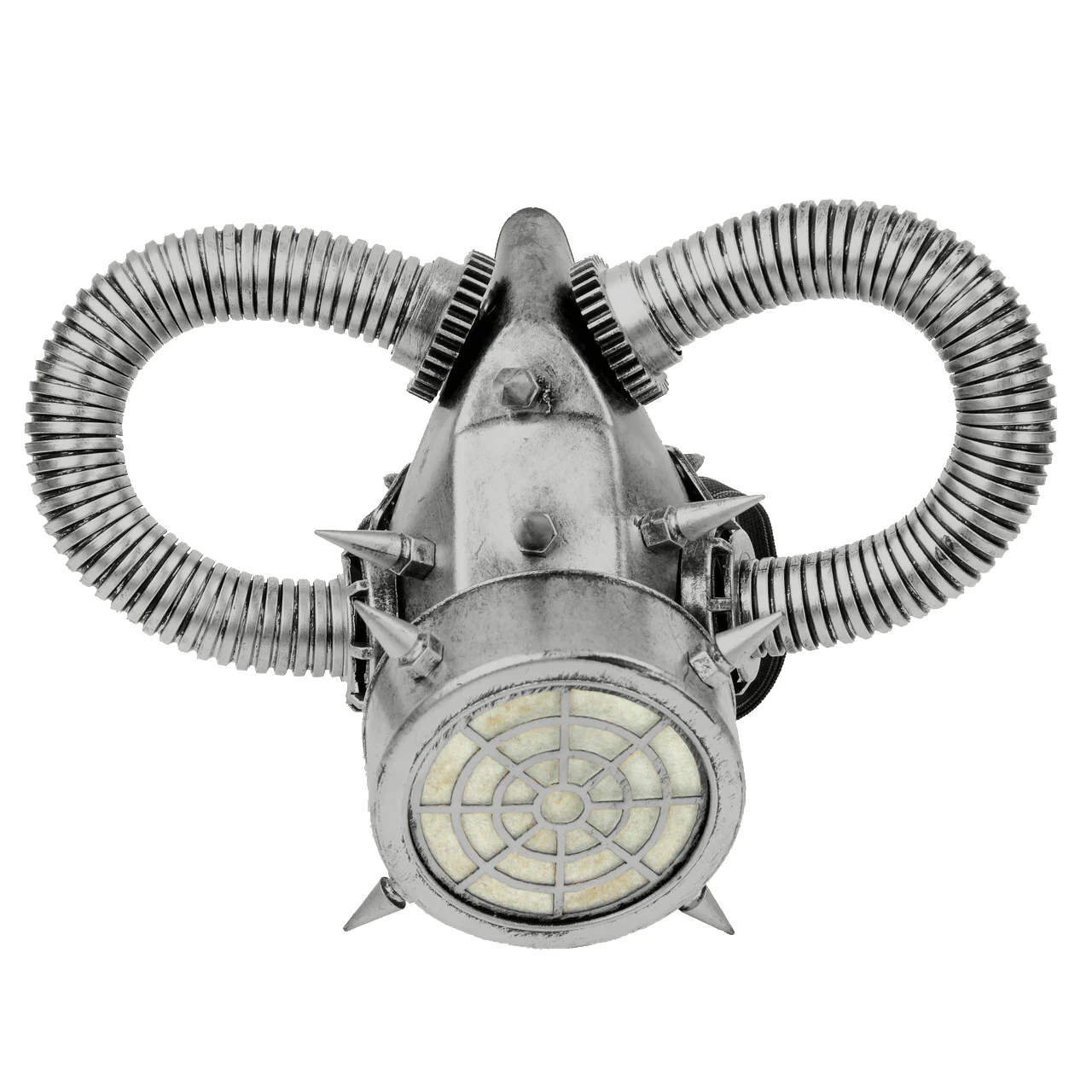Mask features a steampunk inspired distressed base, spikes, tubes and filter.Â
